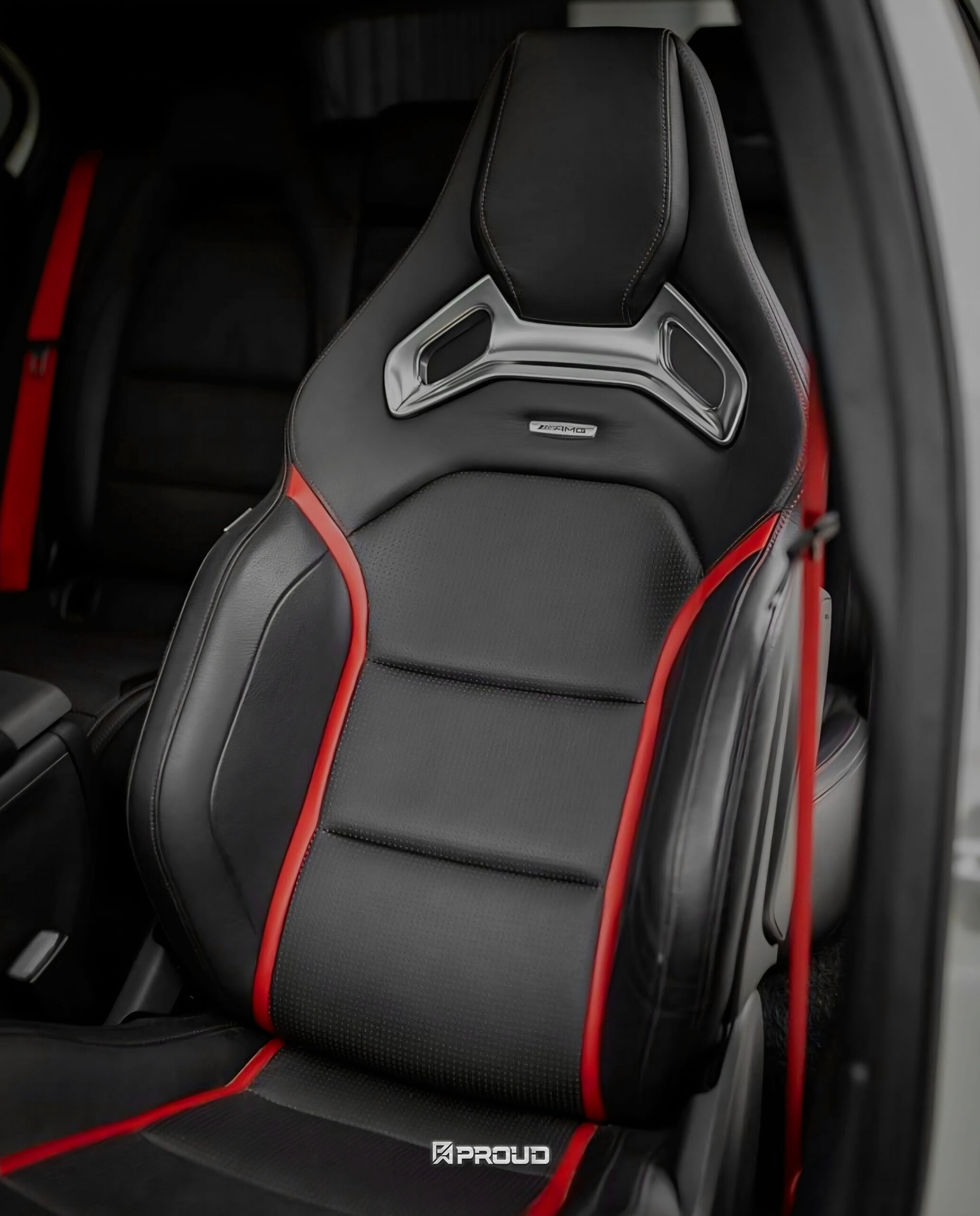– โลโก้ AMG: โดดเด่นด้วยเพลทโลโก้ AMG โลหะขัดเงา ฝังบนพนักพิง ตอกย้ำความเป็นที่สุดของ AMG
