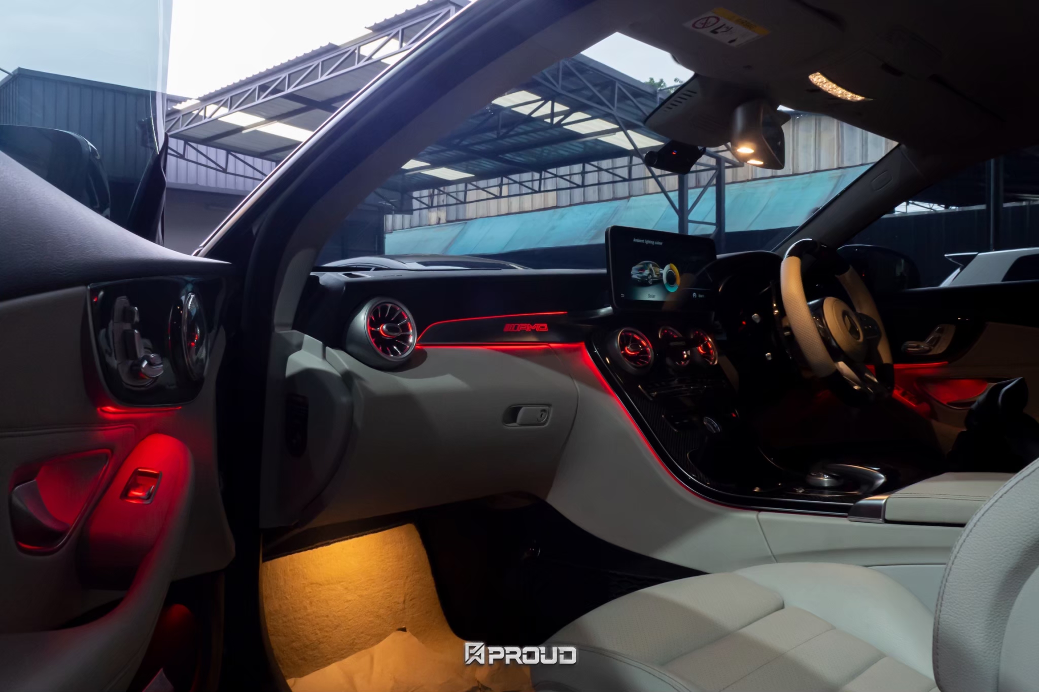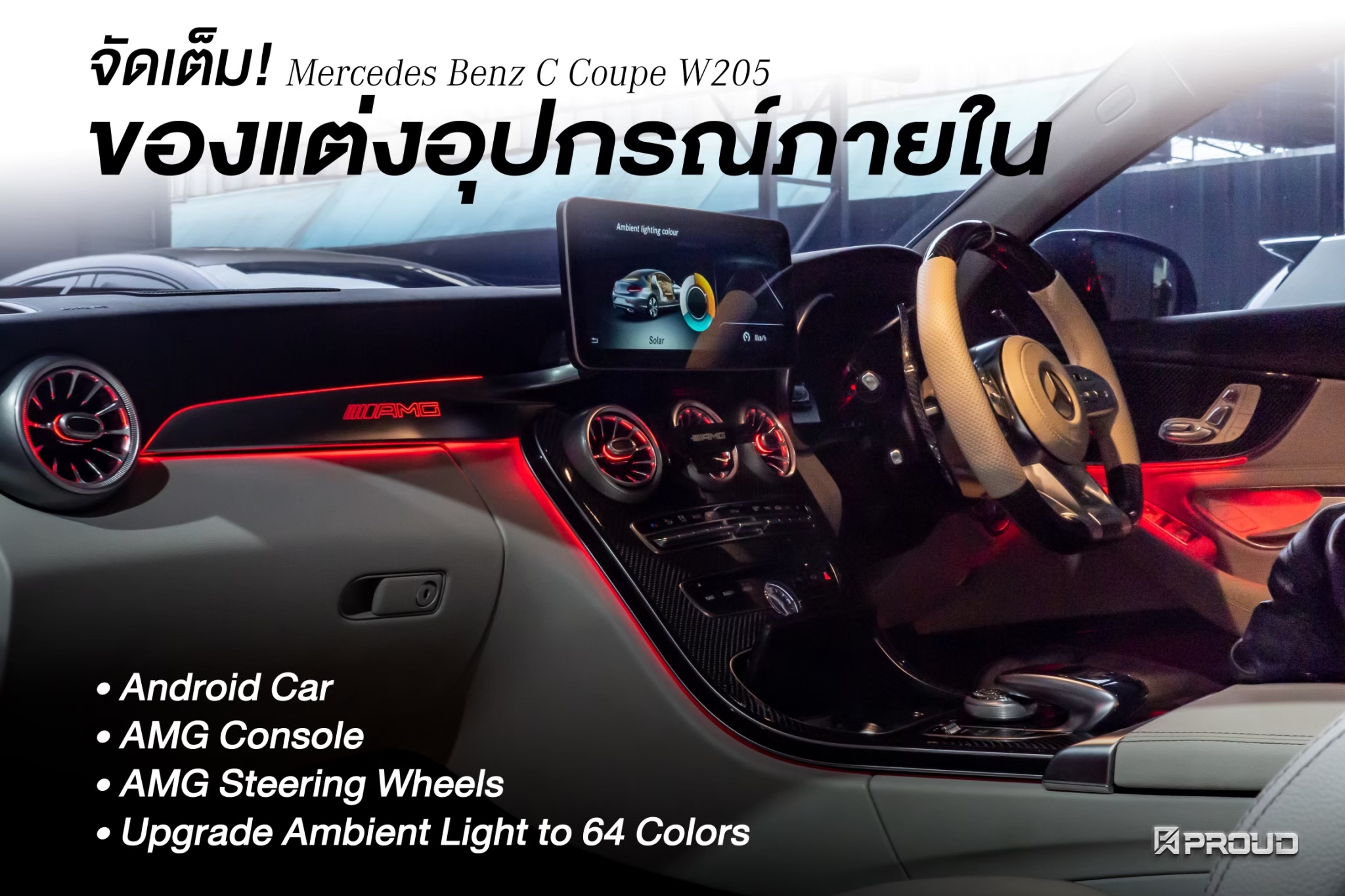 🏁 ชุดคอนโซล AMG แบบมีไฟ เปลี่ยนสีได้ตามตัวรถ ★ AMG Console สวยหรู พรีเมี่ยม ไม่ตัดต่อสายไฟ ไม่โดนวารันตี สำหรับเบนซ์ C W205 – GLC X253